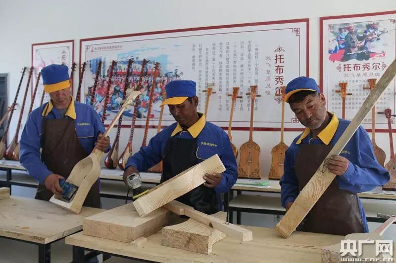 在民族乐器制作基地,工匠正带着几名学徒赶制一批托布秀尔乐器。画图、挖槽、打磨、抛光……每道工艺都一丝不苟。培训中心负责人山其米格介绍,除了师傅带徒弟这种模式,中心还举办各类培训,近期就为当地50名低保户、贫困户做了免费培训。